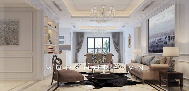 Thiết kế phòng khách của biệt thự, nhà phố ấm cúng, mà sang trọng với nội thất tân cổ điển đầy tinh tế, nghệ thuật.