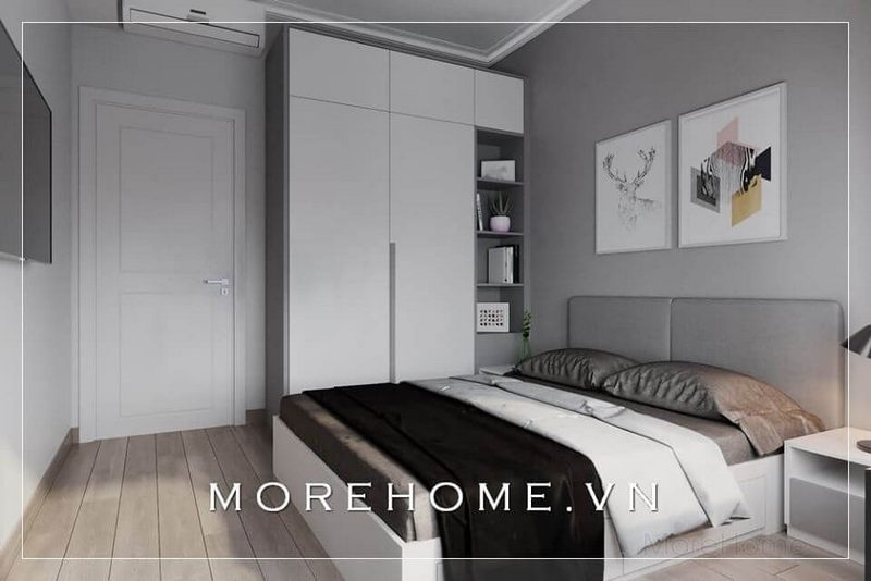Giường ngủ hiện đại kết hợp nệm ốp đầu giường bọc nỉ ấn tượng với tone xám nổi bật.