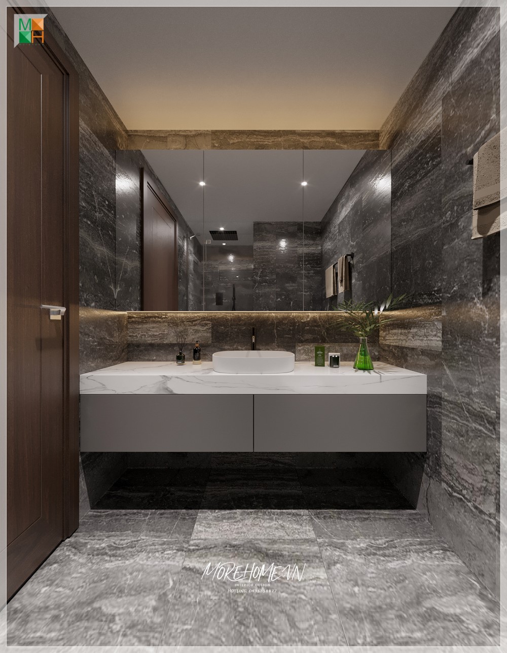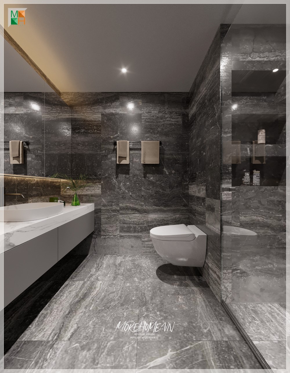 Phòng tắm hiện đại được trang trí bằng nội thất tiện nghi, giúp gia chủ có một trải nghiệm sử dụng thoải mái.