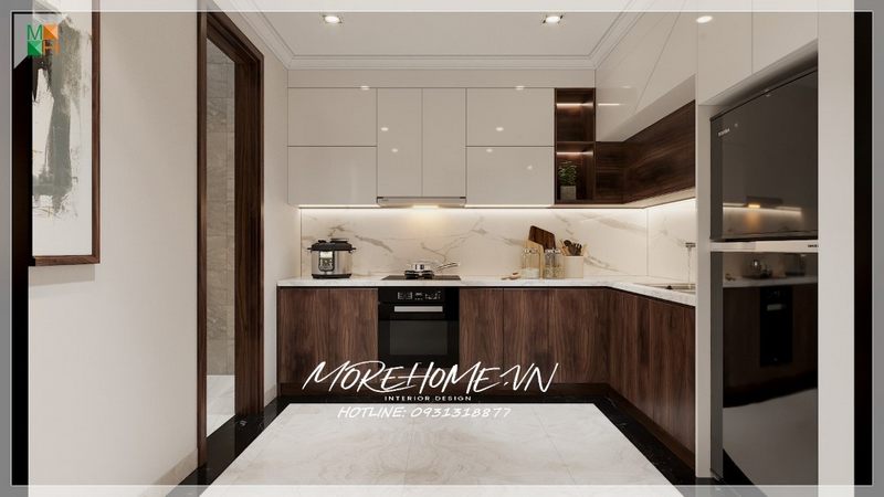 Phòng bếp biệt thự được thiết kế theo phong cách hiện đại, tiện nghi và sang trọng.