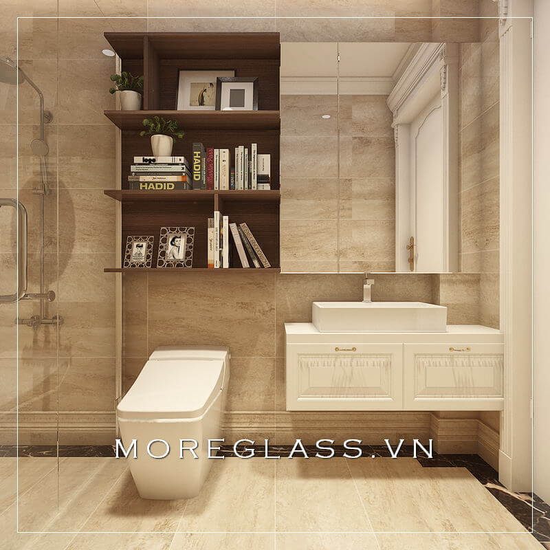 Mẫu phòng tắm được làm từ kính cường lực để phù hợp với căn hộ chung cư cao cấp.
