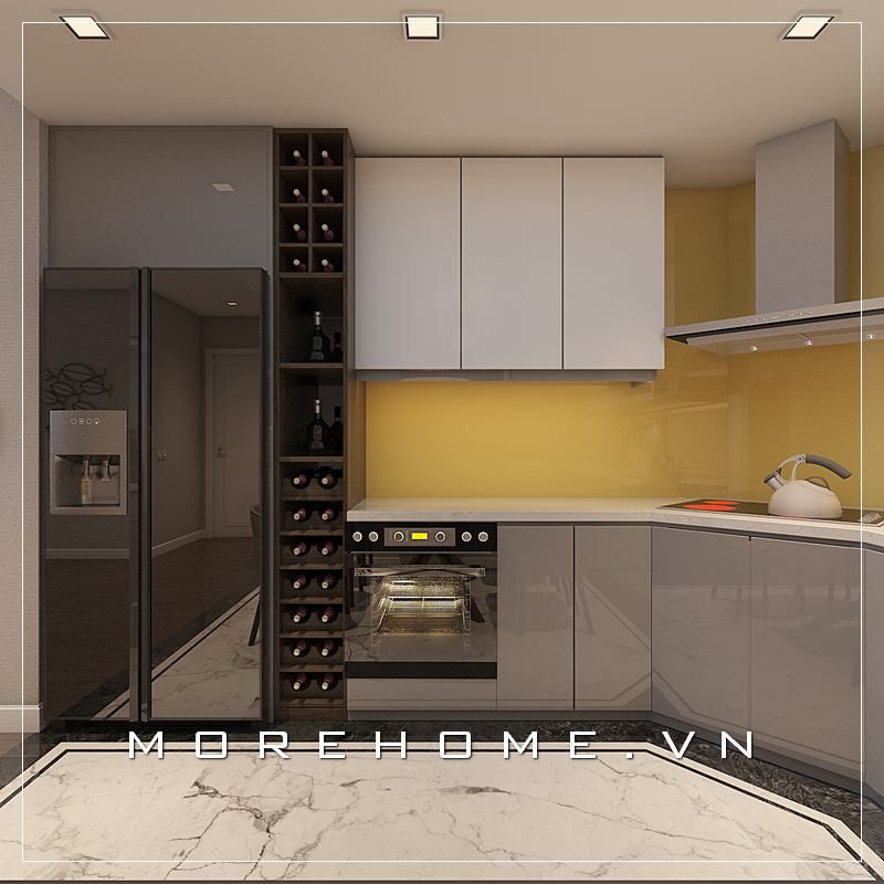 Nội thất phòng bếp hiện đại và tiện nghi được thiết kế để phù hợp với nhà chung cư.